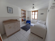 Cette maison de bourg de 110 m², entièrement restaurée, offre tout le confort tout en conservant le charme de l'ancien. Elle dispose d'une pièce à vivre équipée, d'un salon donnant sur une cour intérieure, salle de bains et toilettes séparés et, à l'étage, de 3 chambres cosy et d'une salle d'eau avec toilettes. La maison dispose également de dépendances et d'une belle cave voutée sous la maison.